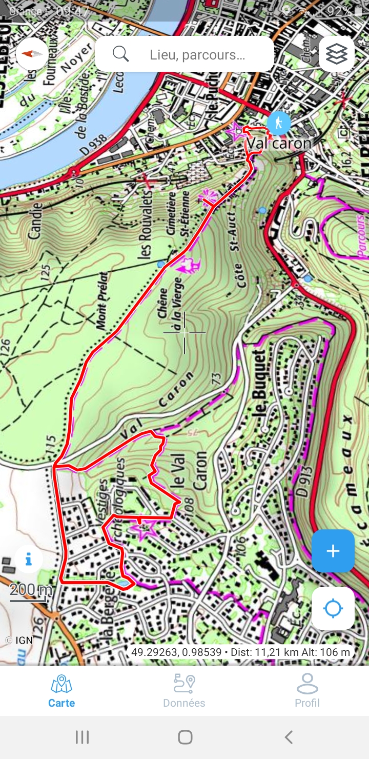 Je propose le départ à partir du parking dans la montée de l’avenue du circuit des Essarts (Elbeuf vers Rouen), voir le lien de la carte ci-joint.